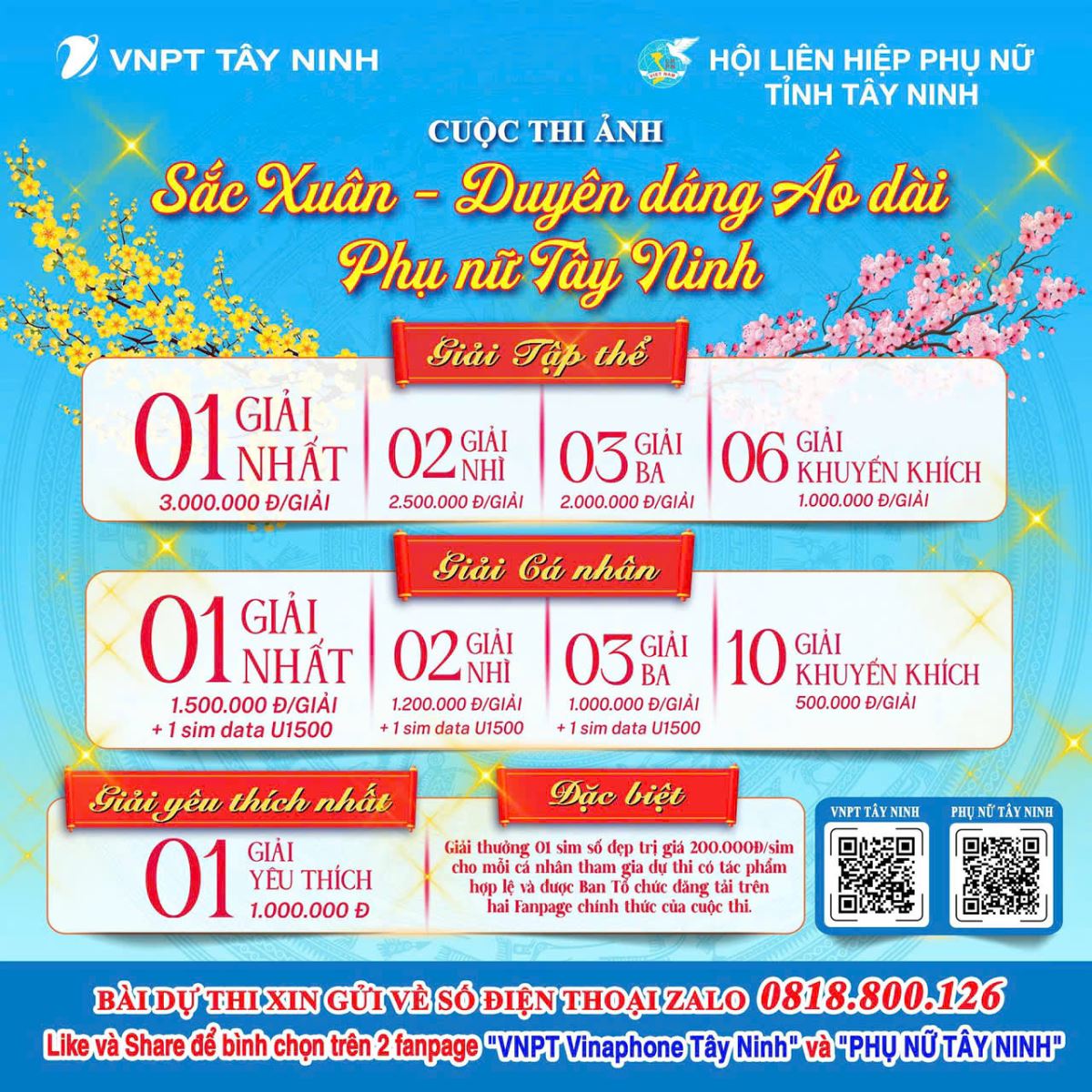 Cuộc thi do Hội Liên hiệp Phụ nữ tỉnh phối hợp Viễn thông Tây Ninh tổ chức cuộc thi ảnh Áo dài “Sắc Xuân- Duyên dáng Áo dài Phụ nữ Tây Ninh” trên mạng xã hội